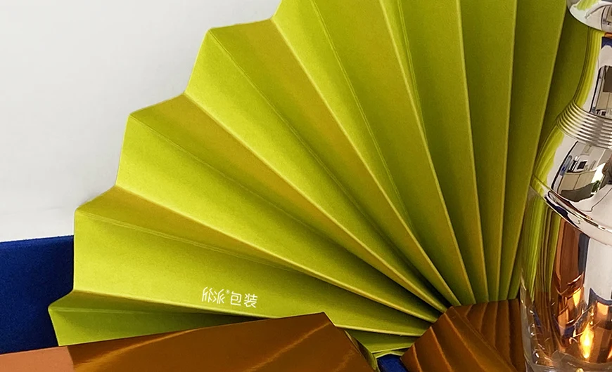 这款盒子的材质使用的非常高端,麂皮绒材质,熟悉过面料的都会多少有些了解,这种材质,触感十足,摸上去让人爱不释手。内部结构带有中国传统文化的折扇造型,在灯光的映射下,非常精美,搭配上节奏感的音乐,让这款礼盒科技感与设计感非常惊艳。外表带有复古的门幅装饰。侧边对口的打开方式,更加增加这款礼盒的多样性。