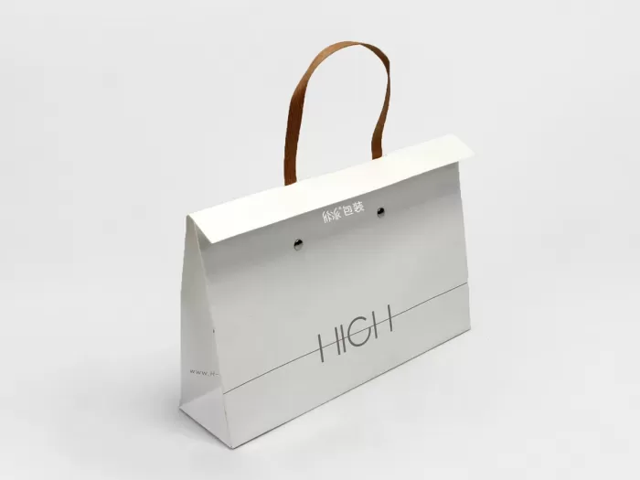 这款HIGH时尚服装手提袋使用白色为主色调,凸显干净简洁的品质,让人一见倾心。这款牛皮纸纸质细腻平滑,能够与艺术纸媲美,赋予了它别样的美感,同时彰显了品牌。
