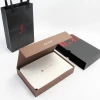 外盒上方有红色的烫印品牌标志,在黑色的盒身上异常醒目,非常抓人眼球。内盒上也有凹凸的品牌文字,再次突出品牌。每个包装盒内有3个卡槽,用来放置茶叶,可以起到固定和保护的作用。与包装盒配套的还有一个手提袋,红、黑两色的搭配非常经典,与包装盒风格统一,十分相配。